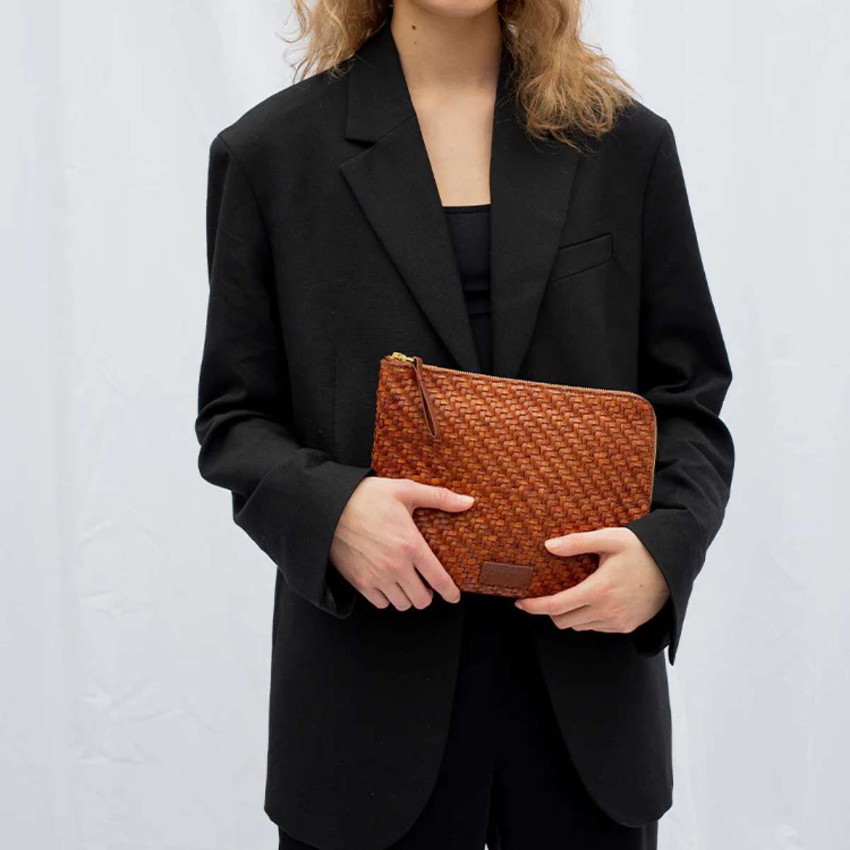 En allsidig veske som kan brukes som en klassisk clutch, etui for iPad eller som bagorganisator. Vesken har en praktisk håndleddsrem slik at du kan variere måten du holder den på.
