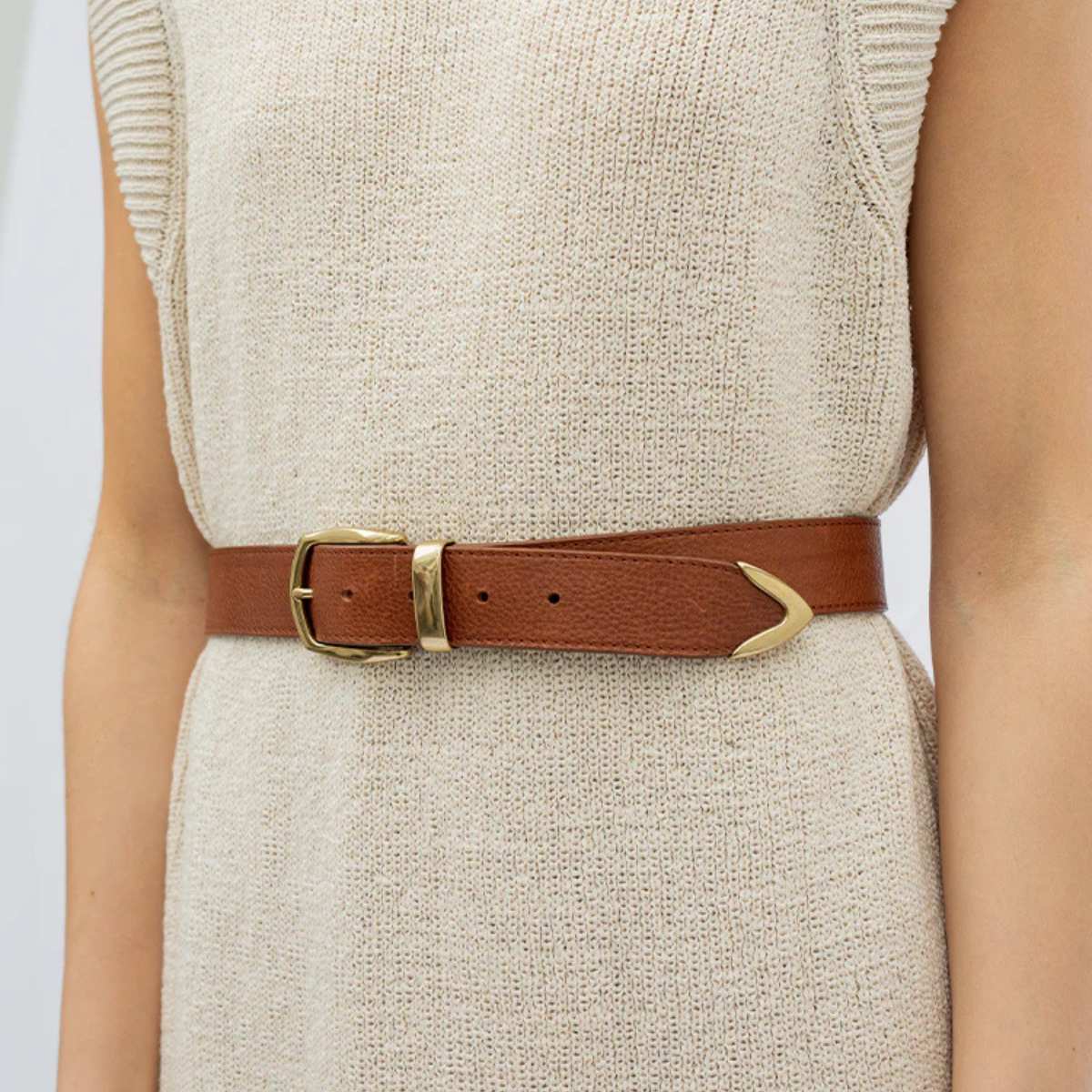Nebel Nutmeg Gold er et klassisk belte laget i Italia av mykt ku skinn, med en gullspenne. Tre det gjennom dine favorittjeans, eller legg det rundt en oversized blazer eller kjole.