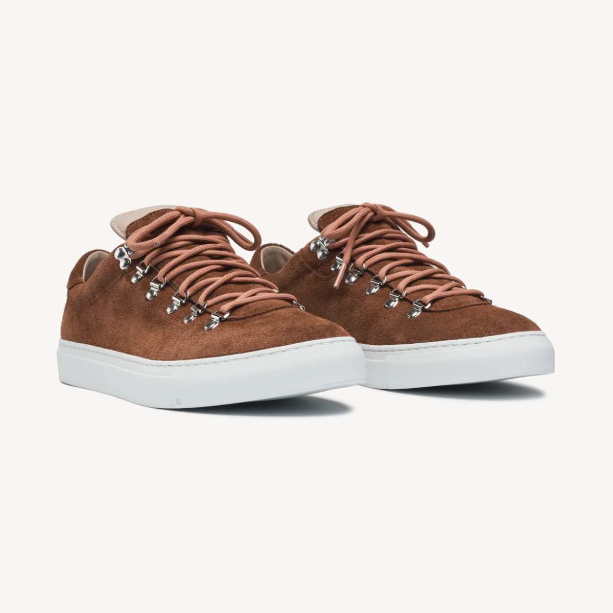 Marostica Low var Diemmes aller første sneaker – og har i dag fått en klassikerstatus i kolleksjonen. Håndlaget i ekte italiensk skinn ved Diemmes fabrikk i Veneto, kombinerer denne modellen et minimalistisk lavt design med tekniske detaljer inspirert av fjellklatring – som sølvfargede D-ringer og en delikat, håndsydd gummikant som binder sammen den myke skinnoverdelen med den solide Margom-sålen.