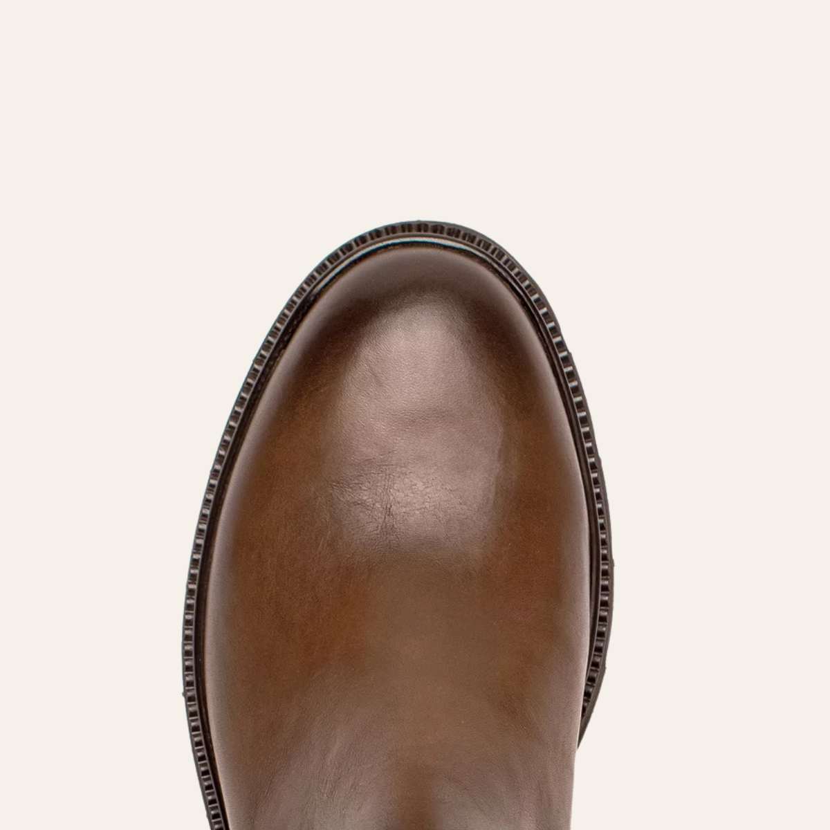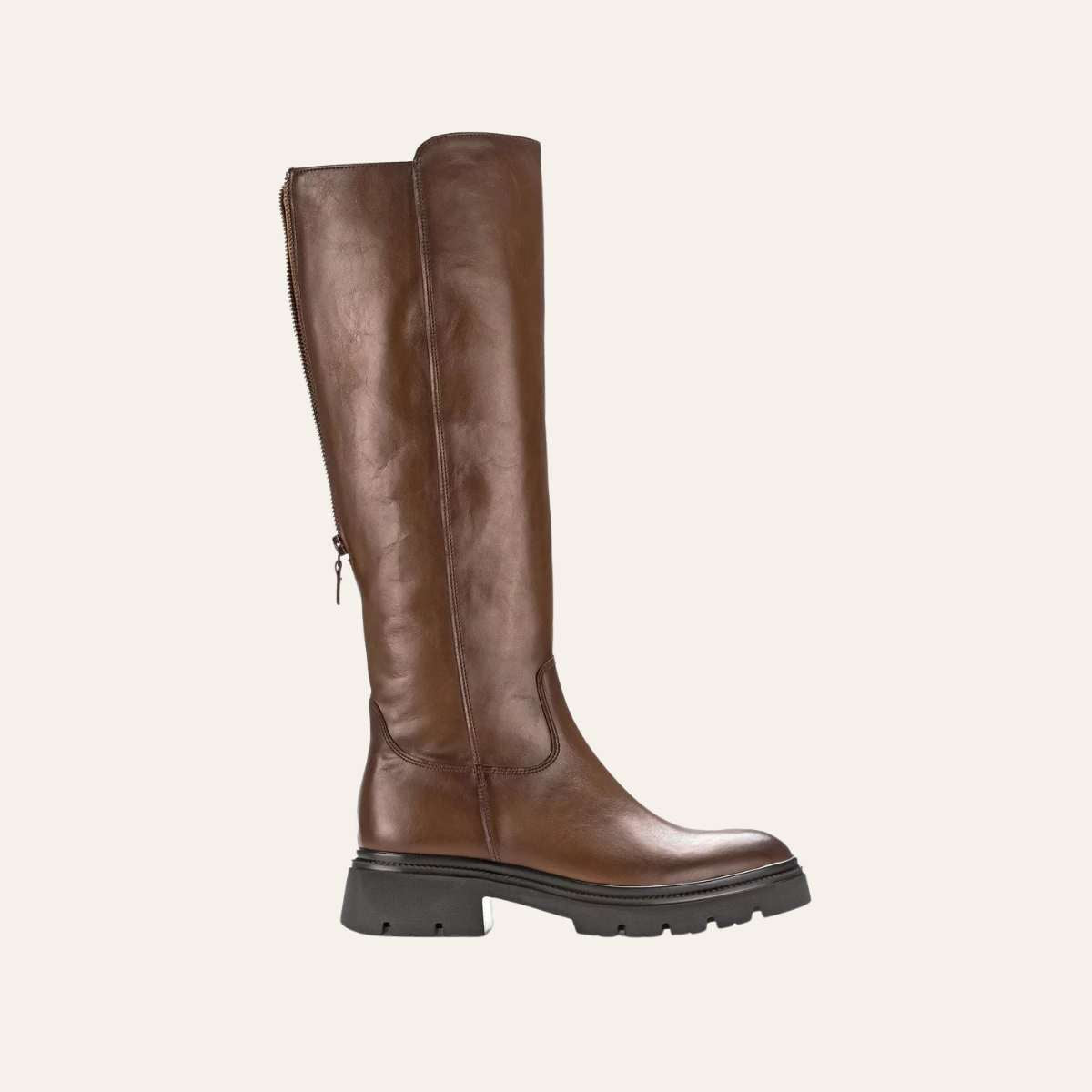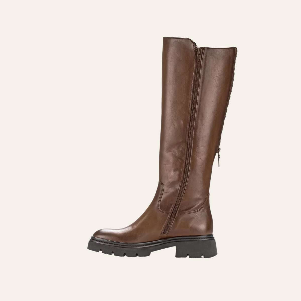 Det glatte overlæret i lær gir et sofistikert uttrykk, mens innermaterialet i mikrofôr sikrer behagelig komfort hele dagen. Støvlene har en rund tå og lukkes med en glidelås for enkel på- og avtakning.