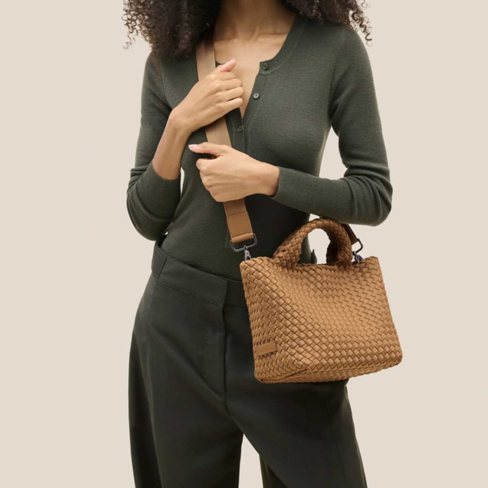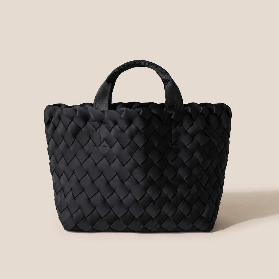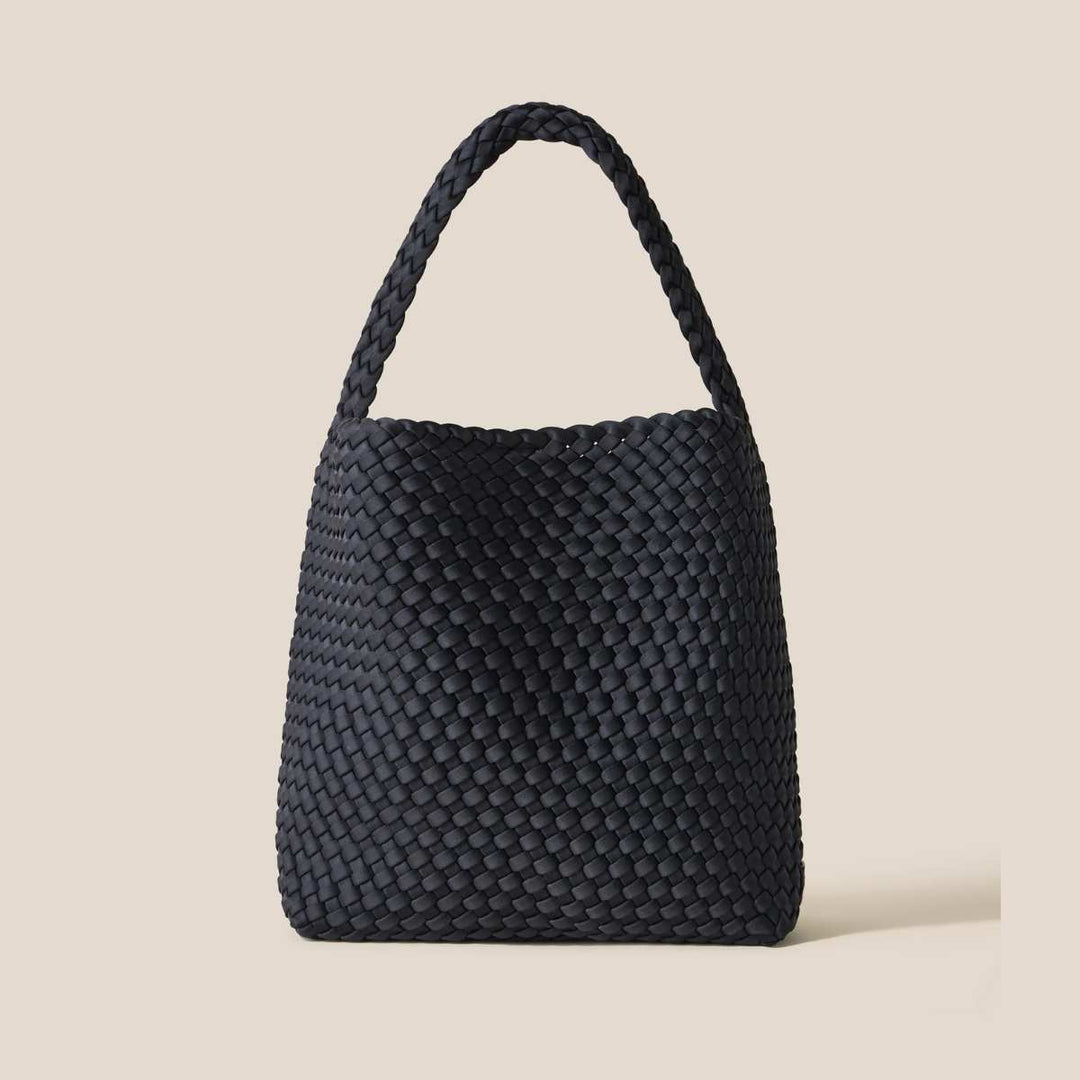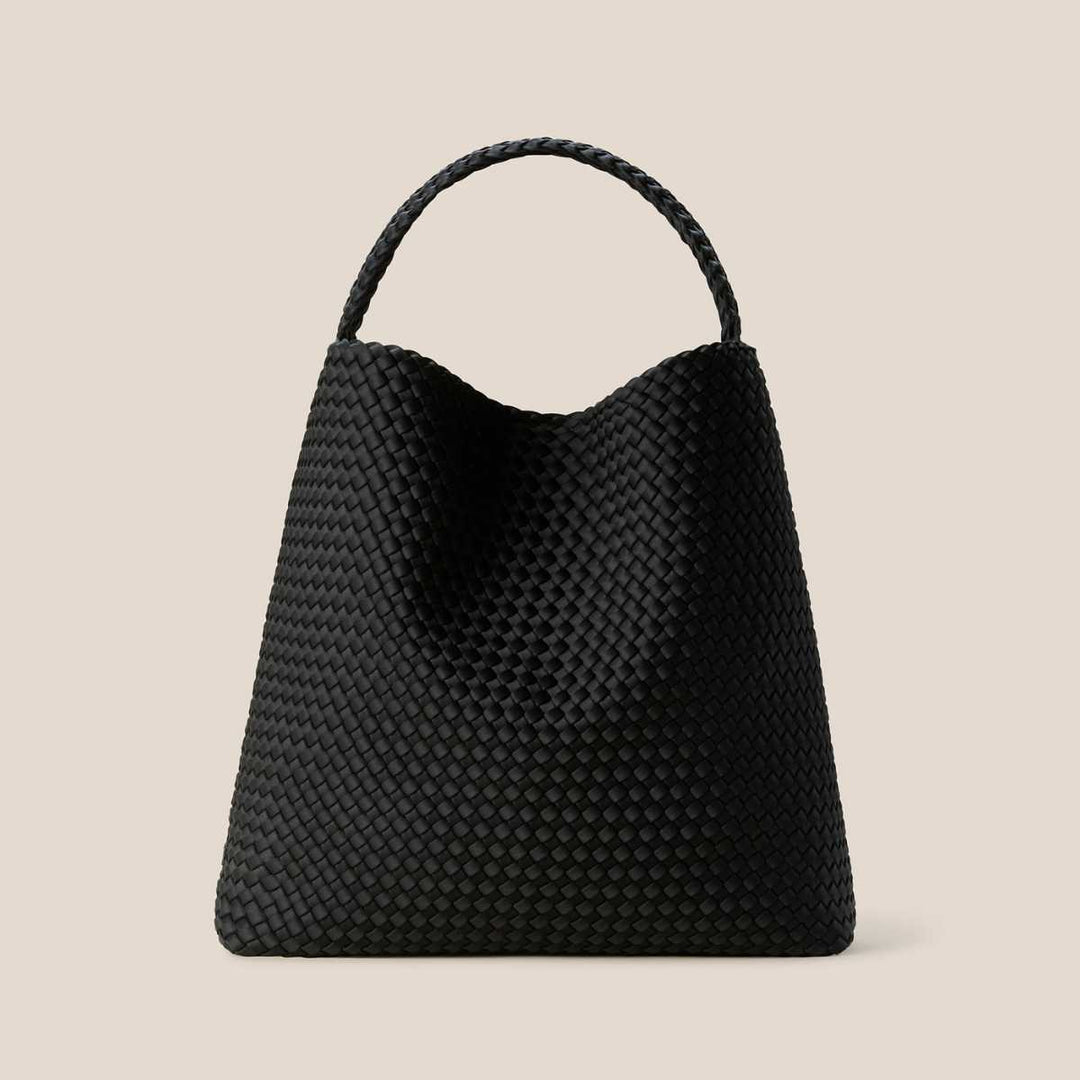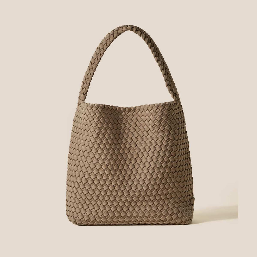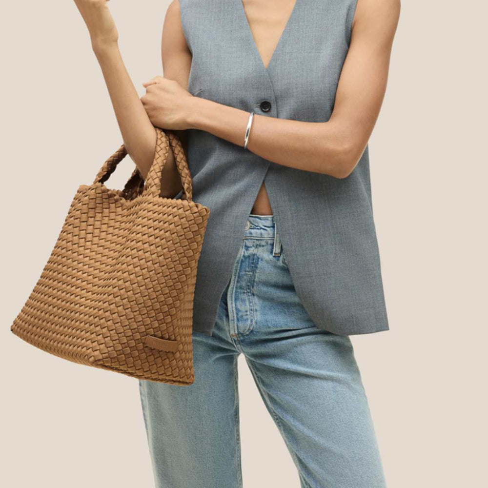 Naghedi-veskene er kjent for sitt karakteristiske vevde mønster, laget av slitesterke, vannavstøtende materialer. Grunnleggeren, Sara Naghedi, ønsket å skape et spennende alternativ til de klassiske skinnveskene, og kom med en helt genial idé: håndvevde vesker laget av neopren.