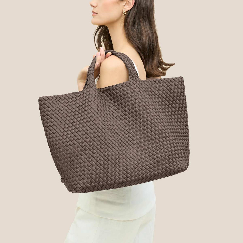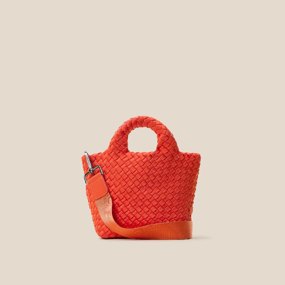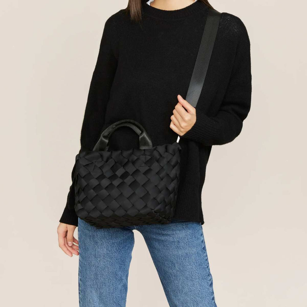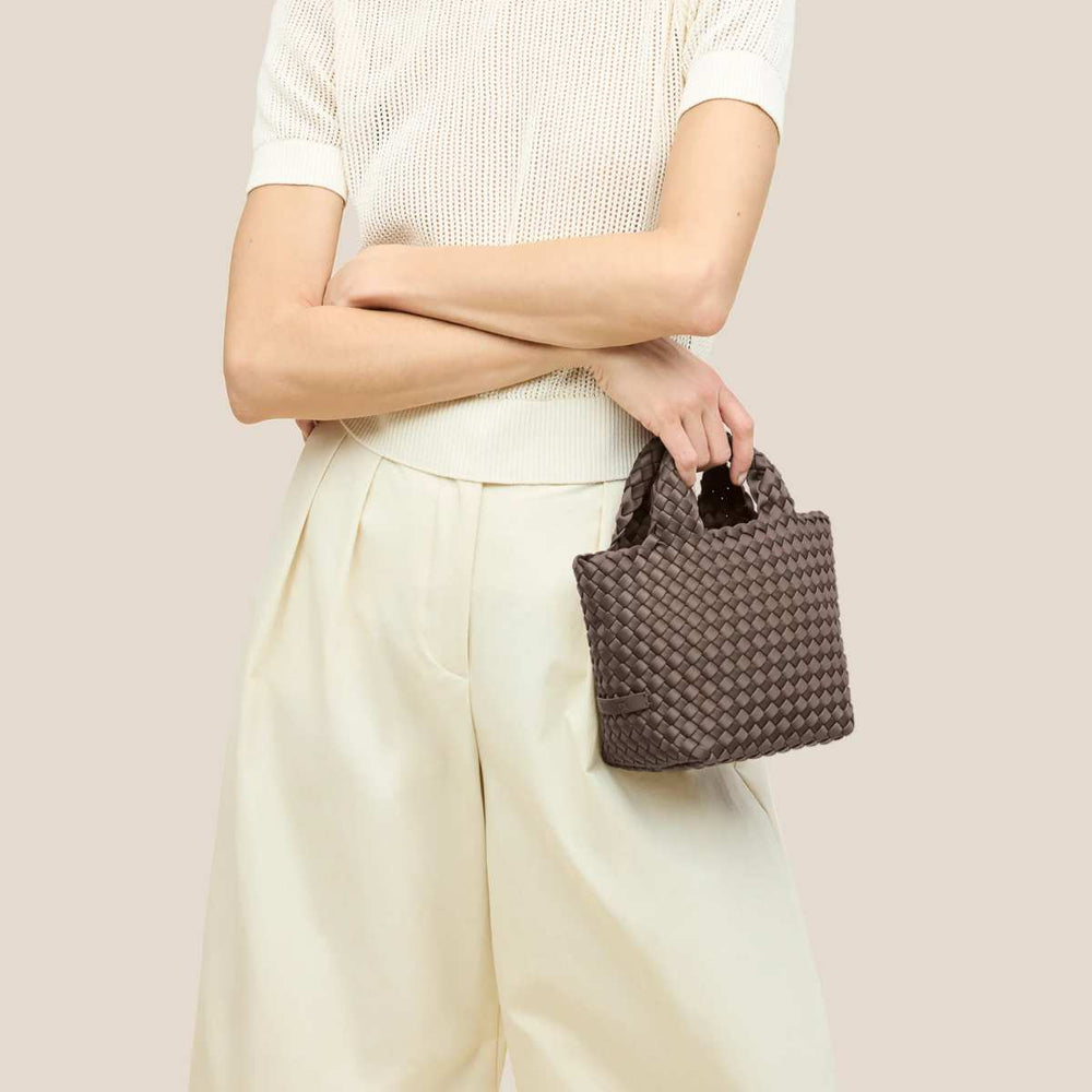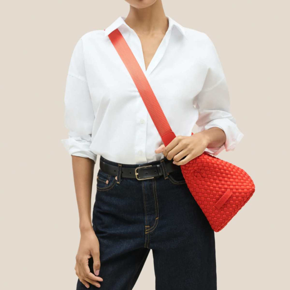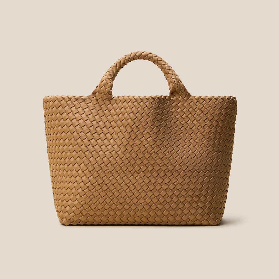 Naghedi-veskene er kjent for sitt karakteristiske vevde mønster, laget av slitesterke, vannavstøtende materialer. Grunnleggeren, Sara Naghedi, ønsket å skape et spennende alternativ til de klassiske skinnveskene, og kom med en helt genial idé: håndvevde vesker laget av neopren.