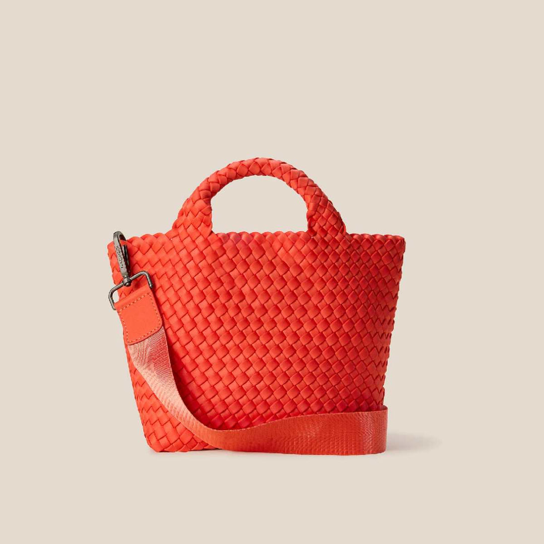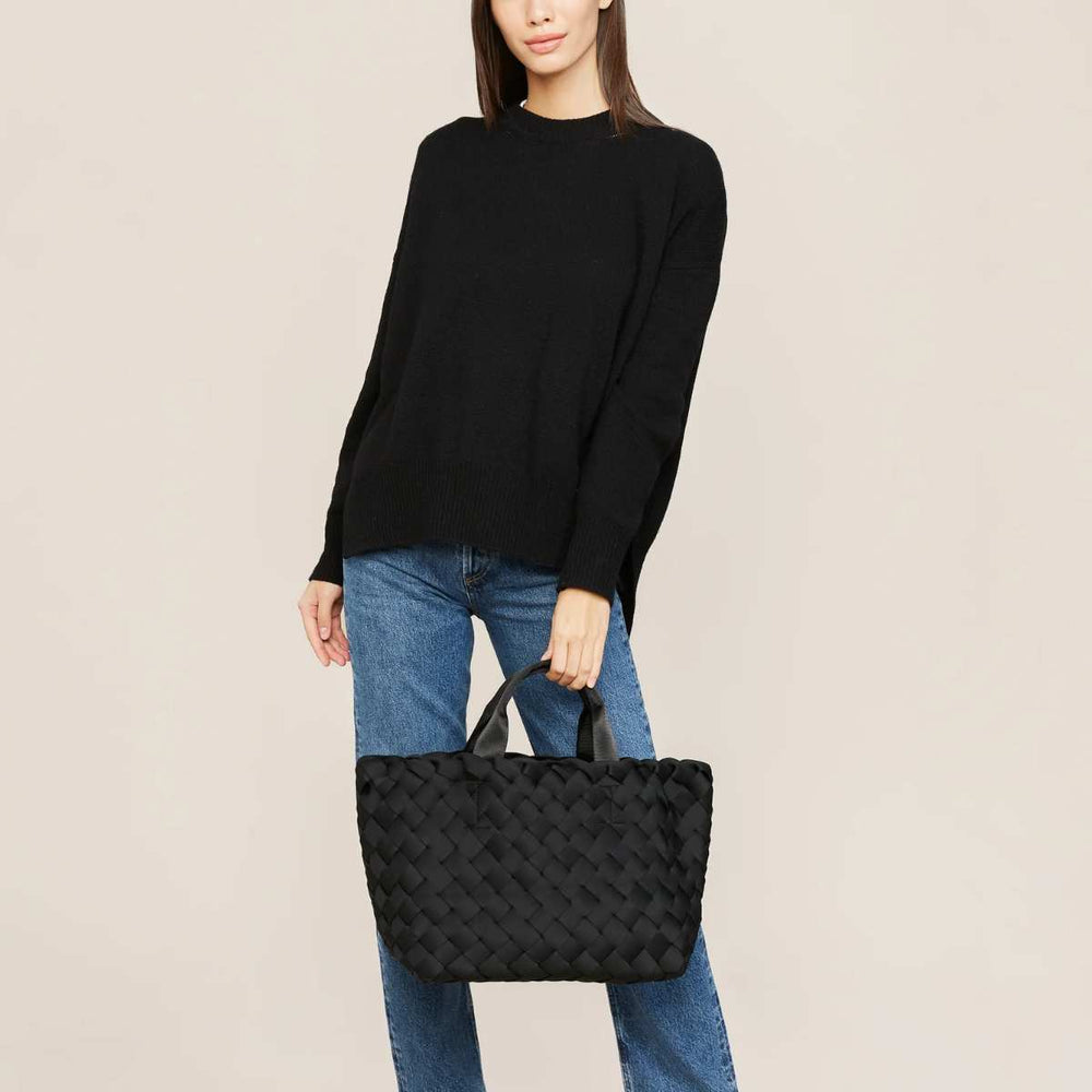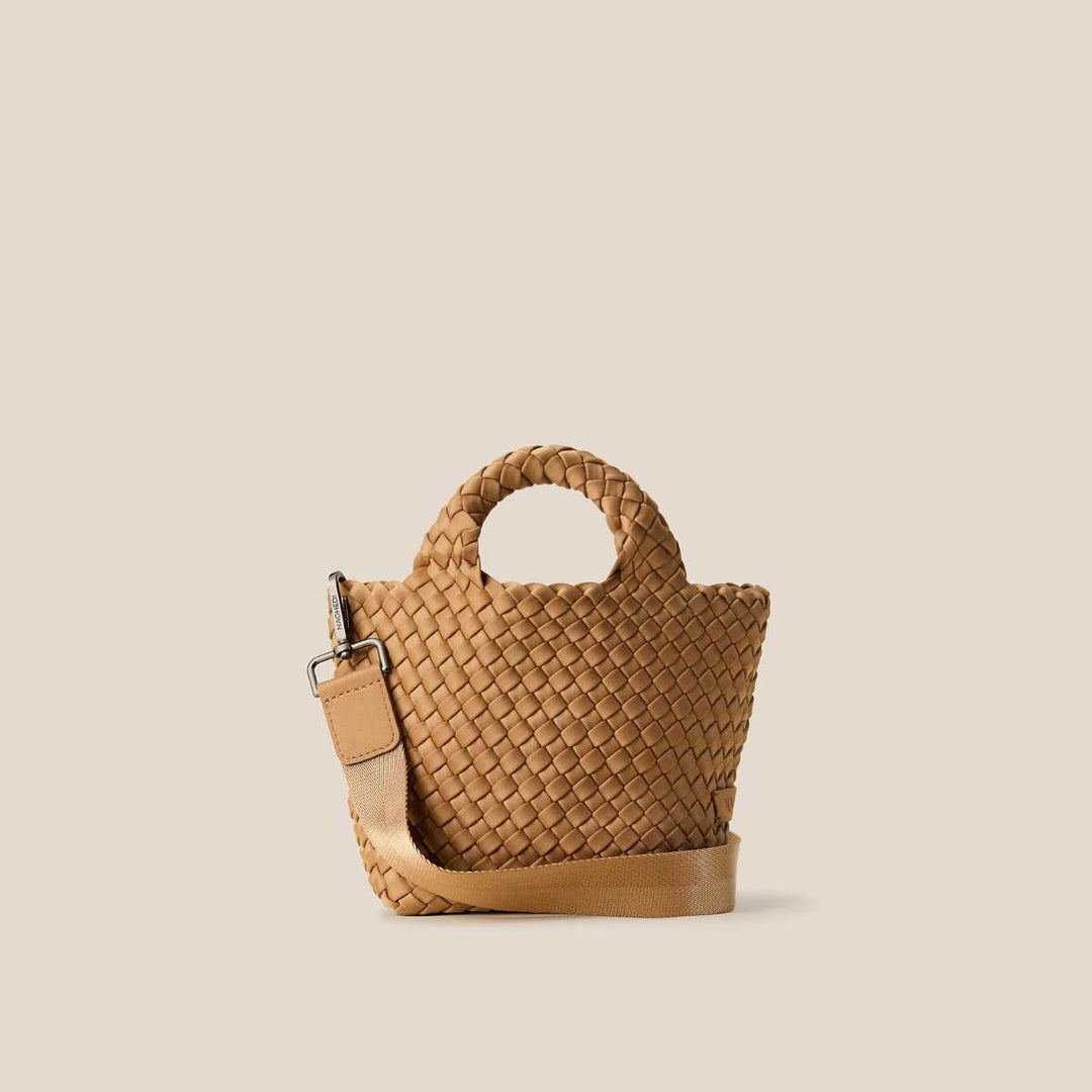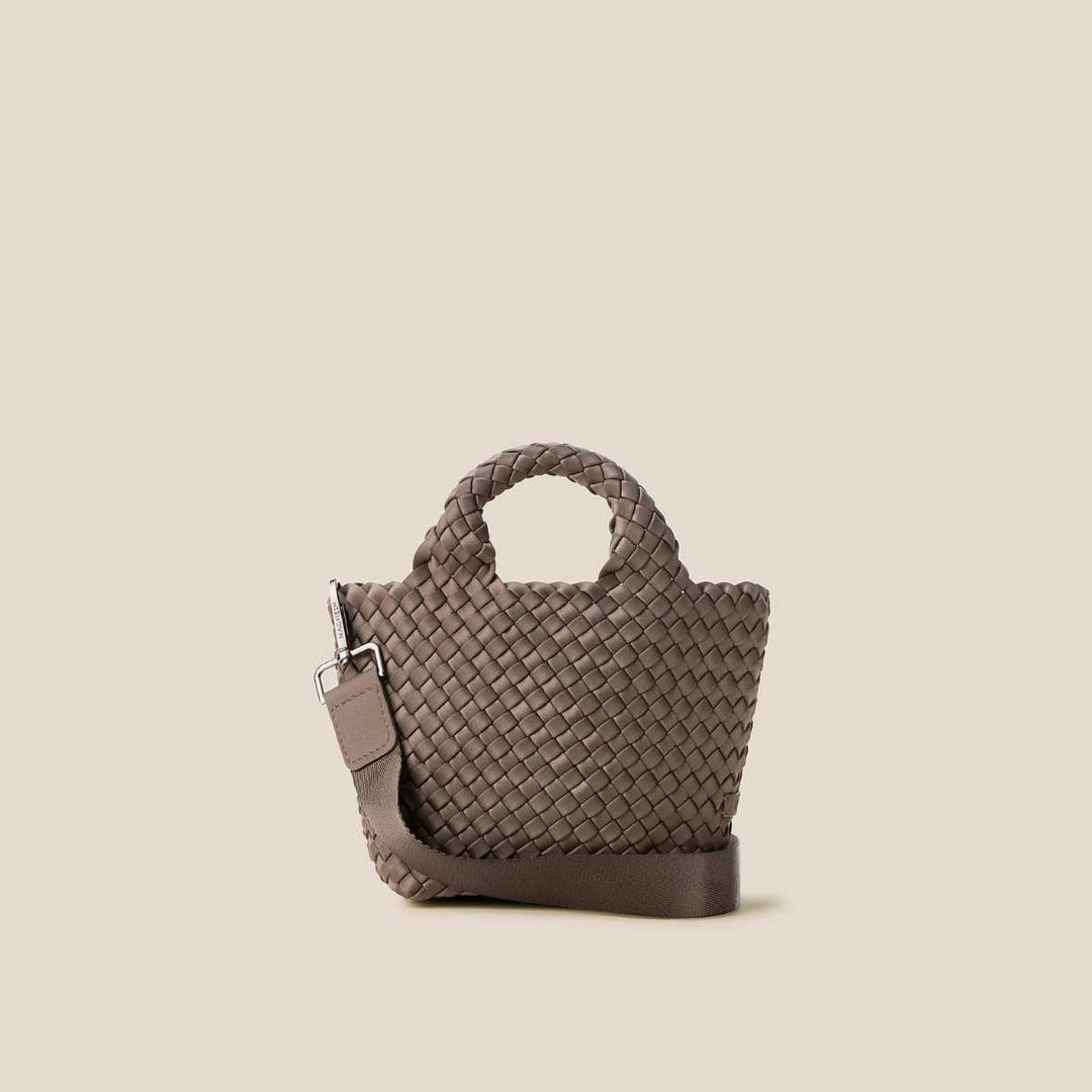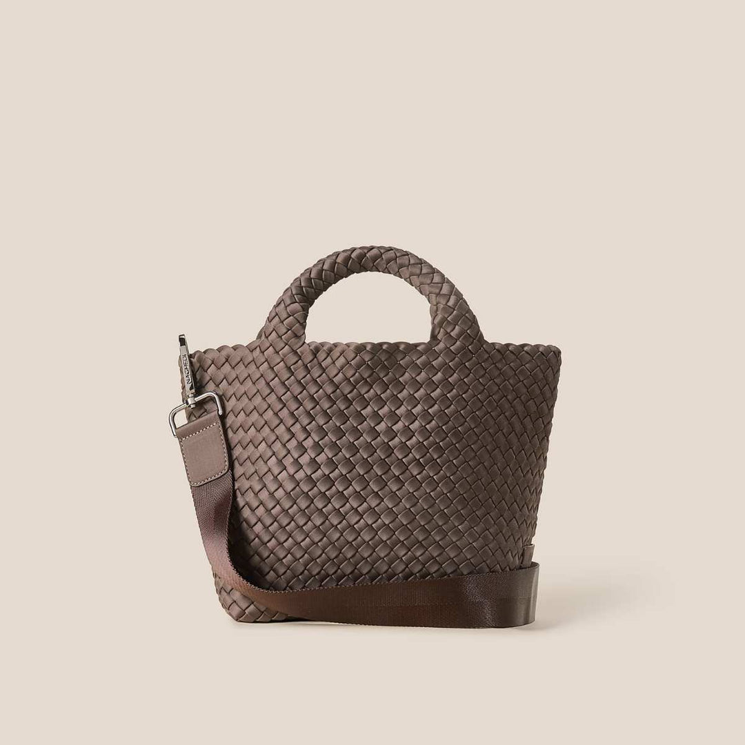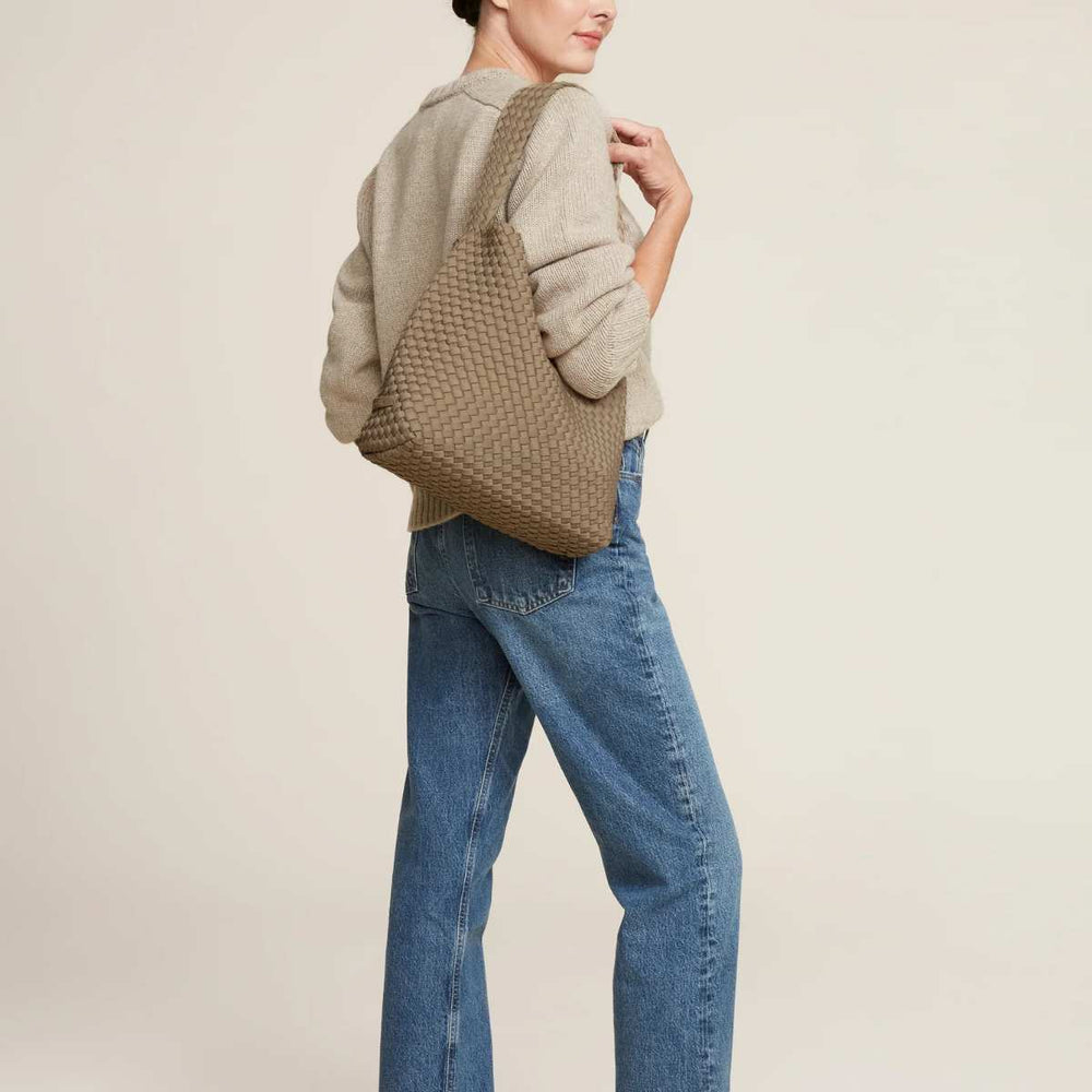 Naghedi-veskene er kjent for sitt karakteristiske vevde mønster, laget av slitesterke, vannavstøtende materialer. Grunnleggeren, Sara Naghedi, ønsket å skape et spennende alternativ til de klassiske skinnveskene, og kom med en helt genial idé: håndvevde vesker laget av neopren.