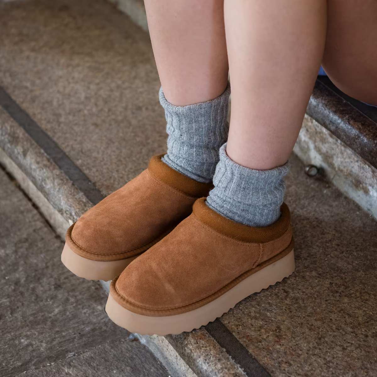 Cabot er trendy slipper med semsket overdel og varmeisolerende fôr av ull og ekte saueskinn, som holder føttene dine varme på kalde dager. Modellen har rund tupp og flat yttersåle med knastemønster for bedre grep på snø og is. Den høye, lettvekts gummisålen gir overlegen støtte, perfekt for både innendørs og utendørs bruk. Dekorert med en preget logo på hæl og kantebånd i tekstil.