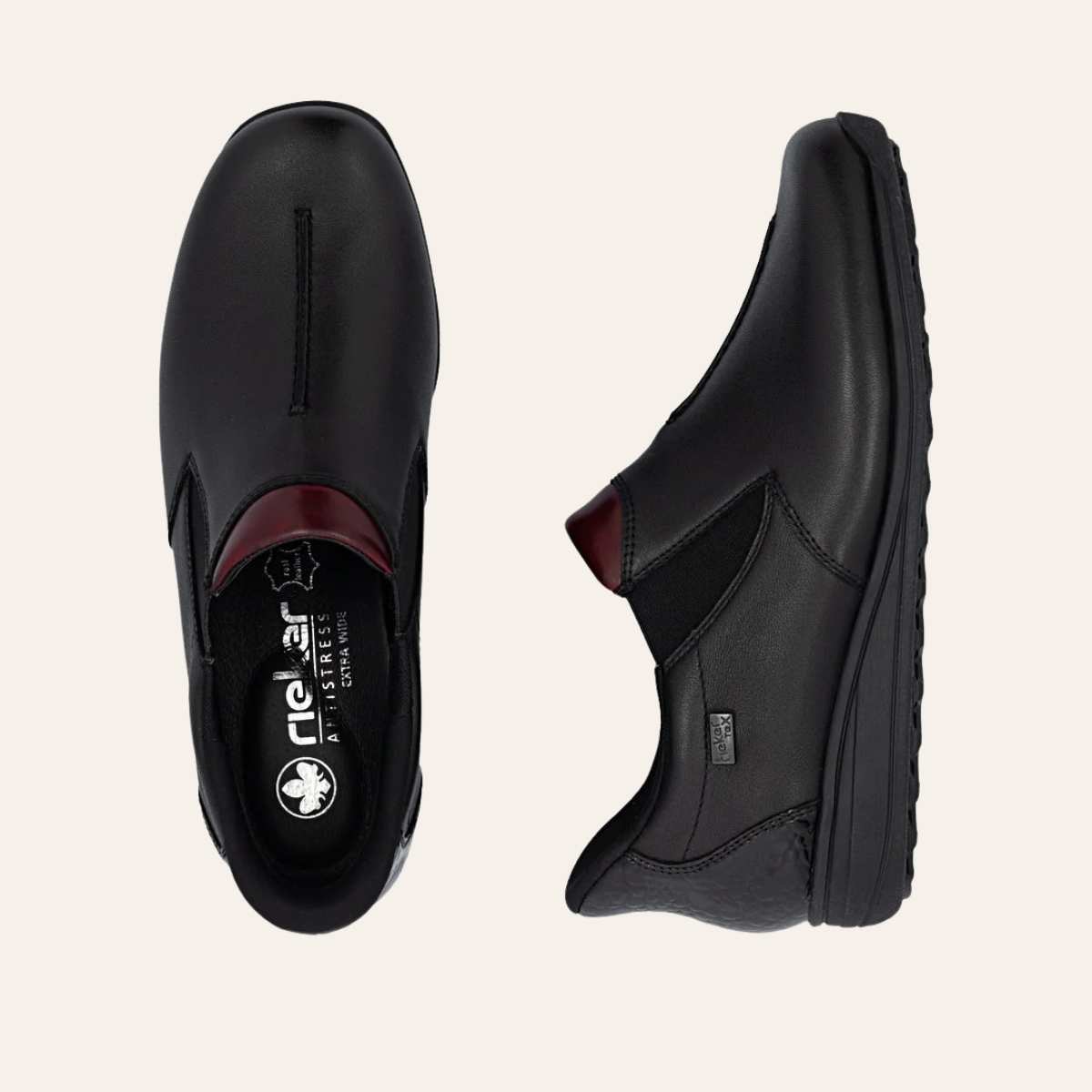 - Funksjoner: Elastisk innsteg, uttakbar innersåle, RiekerTEX vannavvisende teknologi