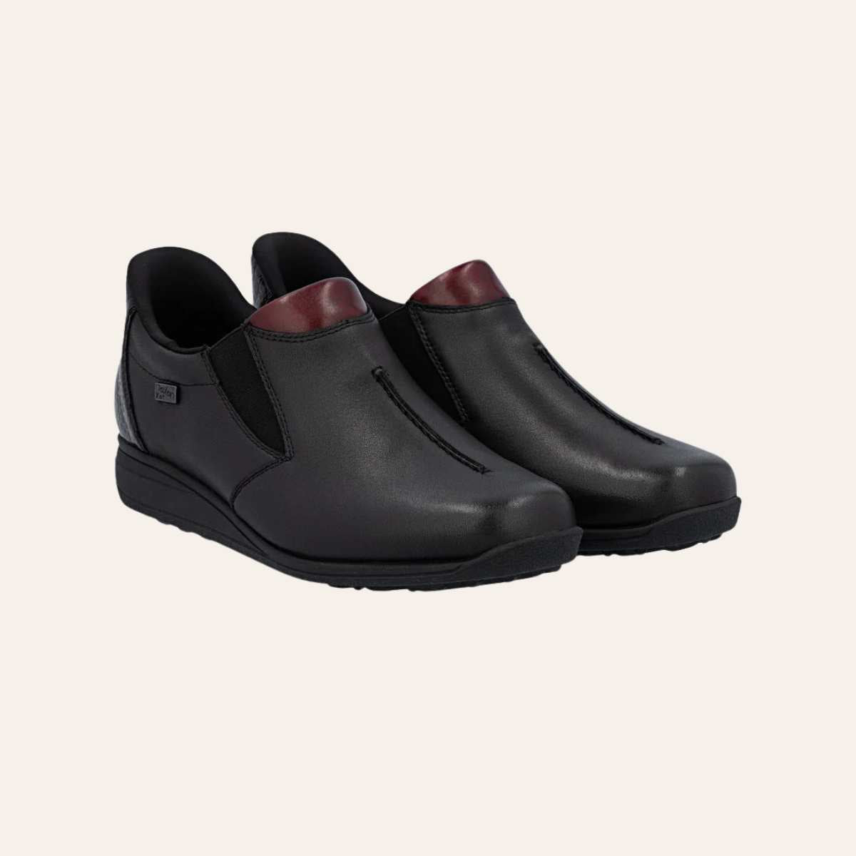 Disse svarte skoene fra Rieker i glatt skinn kombinerer komfort, funksjonalitet og stil. Den elastiske stroppen gir en perfekt passform – som en hanske for foten. Den solide yttersålen gir godt grep på ulike underlag, mens den polstrede og uttakbare innersålen gir følelsen av ferie for føttene. Skoen har ekstra bredde for god plass, og med vannavvisende RiekerTEX-teknologi holder føttene seg tørre uansett vær.