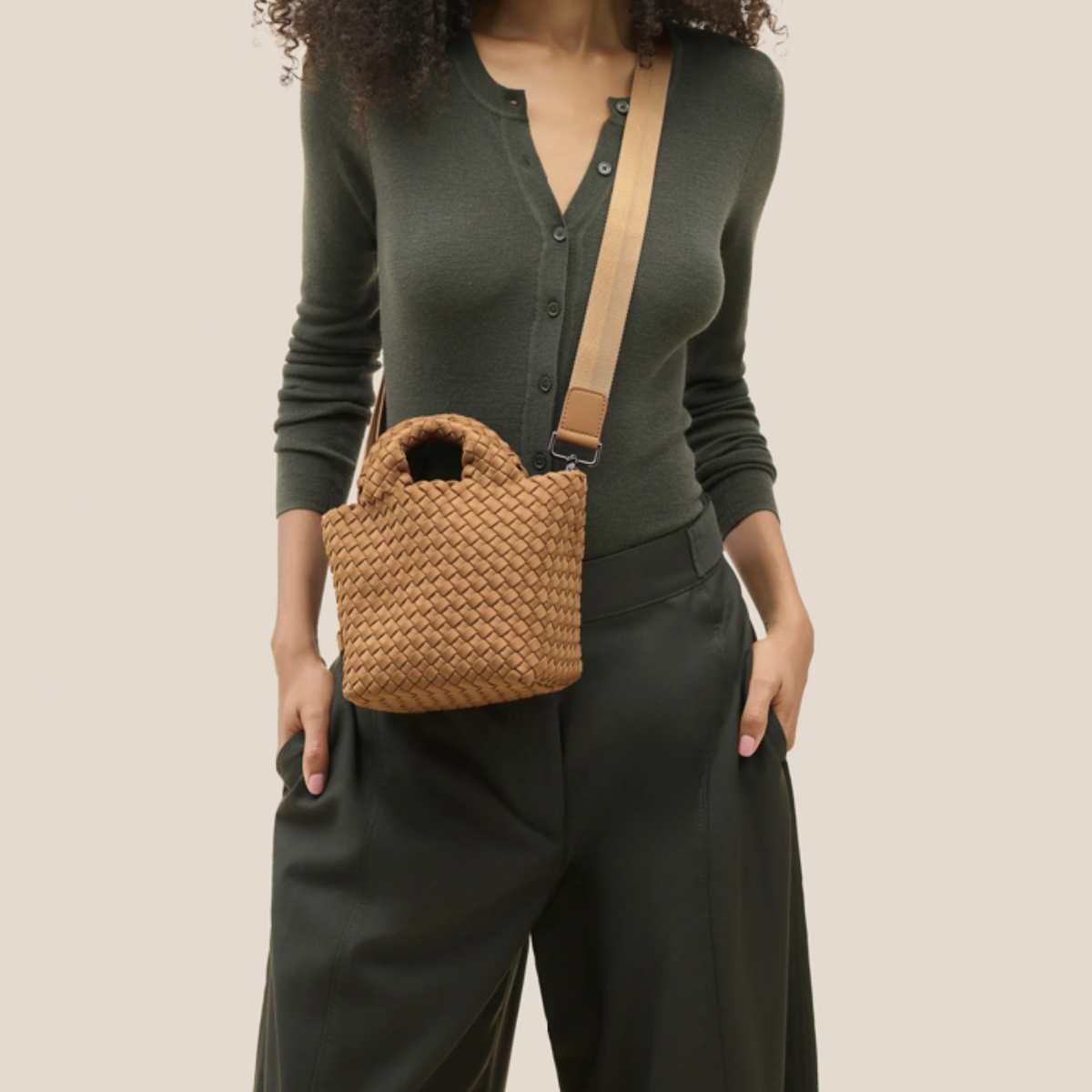 Naghedi St. Barths Petit. Håndvevd neopren i montauk. Barths Petit Tote går sømløst over fra dagtid til kveldstid, og bærer alle de viktigste tingene dine på en komfortabel måte.