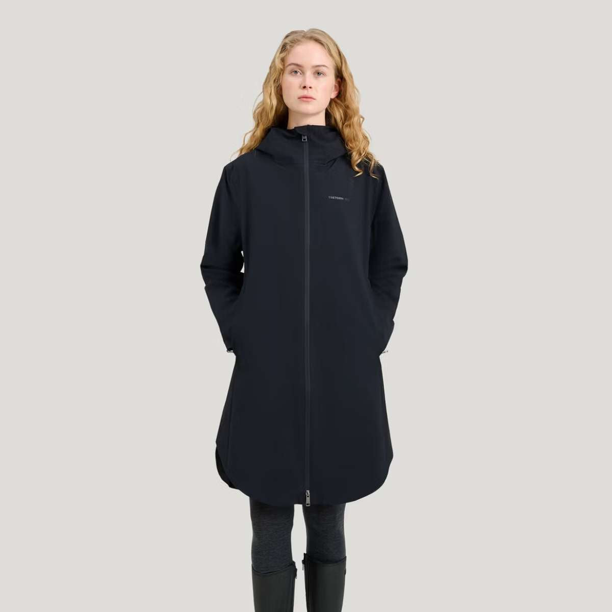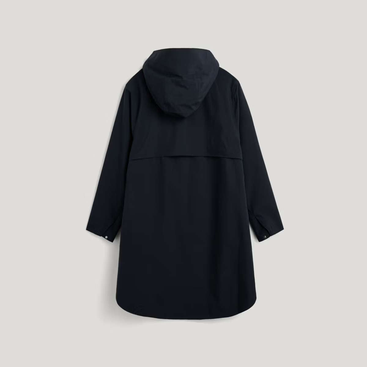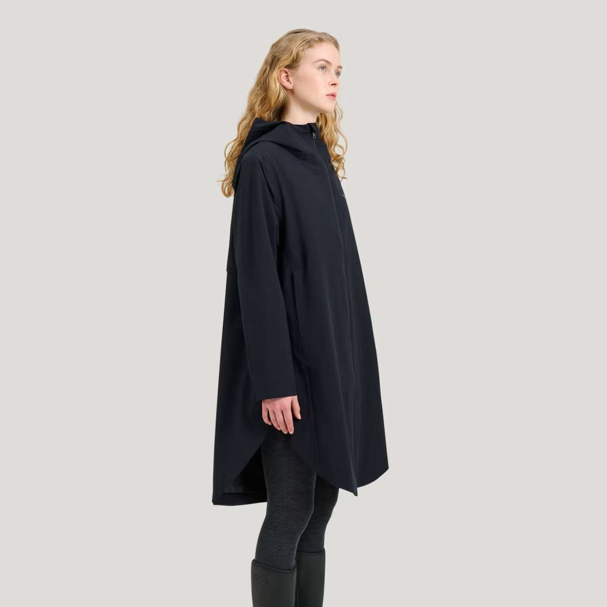 Way Poncho Parka fra Tretorn er en vanntett regnparka for kvinner, designet som et fleksibelt skallplagg for bruk fra vår til høst. Det poncho-inspirerte snittet gir en luftig silhuett med et rent uttrykk, mens konstruksjonen beskytter mot regn og vind. Parkaen er laget av resirkulert materiale og har et vanntett stoff med teipede sømmer og en vindtett og pustende konstruksjon. Diskrete lommer i sidesømmene med skjulte glidelåser, sammen med en innerlomme med glidelås, gir praktisk oppbevaring uten å forstyrre formen eller passformen.