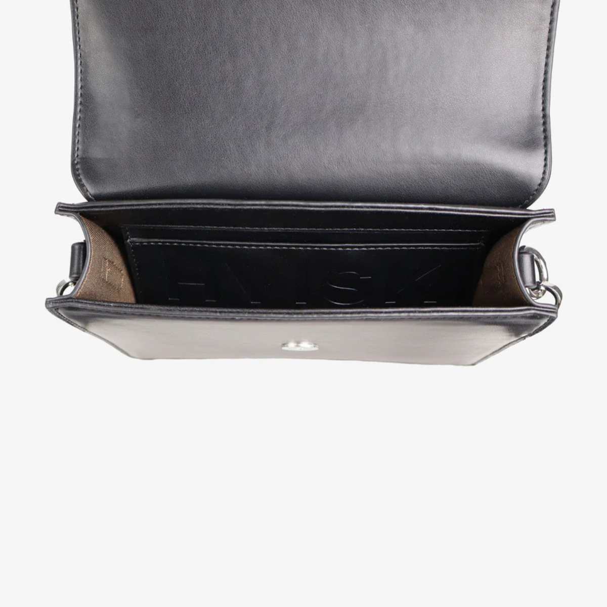 Crossbody-veske fra HVISK med magnetlukking og justerbar stropp. Vesken har en utvendig frontlomme og ett stort hovedrom med en innerlomme.