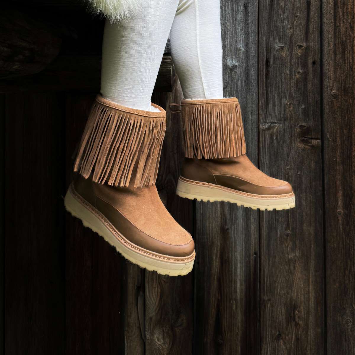 Denne sesongen har vi, sammen med We Norwegian, skapt en eksklusiv vinterstøvel laget av luksuriøst italiensk semsket skinn – et tidløst design kombinert med en av sesongens største trender: frynser.