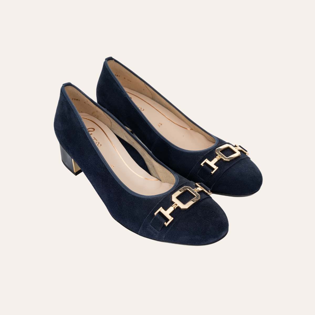 Den vakre pumpsen fra Ara i perforert semsket skinn er den perfekte skoen til ditt businessantrekk. Den fremstår spesielt elegant med sin lakktå og hæl i lakkoptikk. Perforeringene og det indre fôret i skinn sørger for et behagelig fottklima. Den mykt polstrede og utskiftbare innersålen er også trukket i skinn og kan enkelt byttes ut med egne innleggssåler.