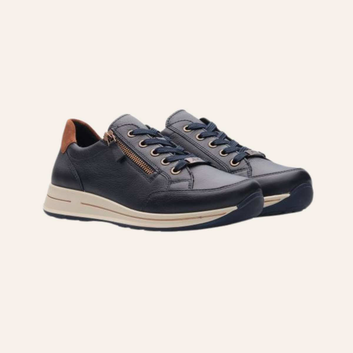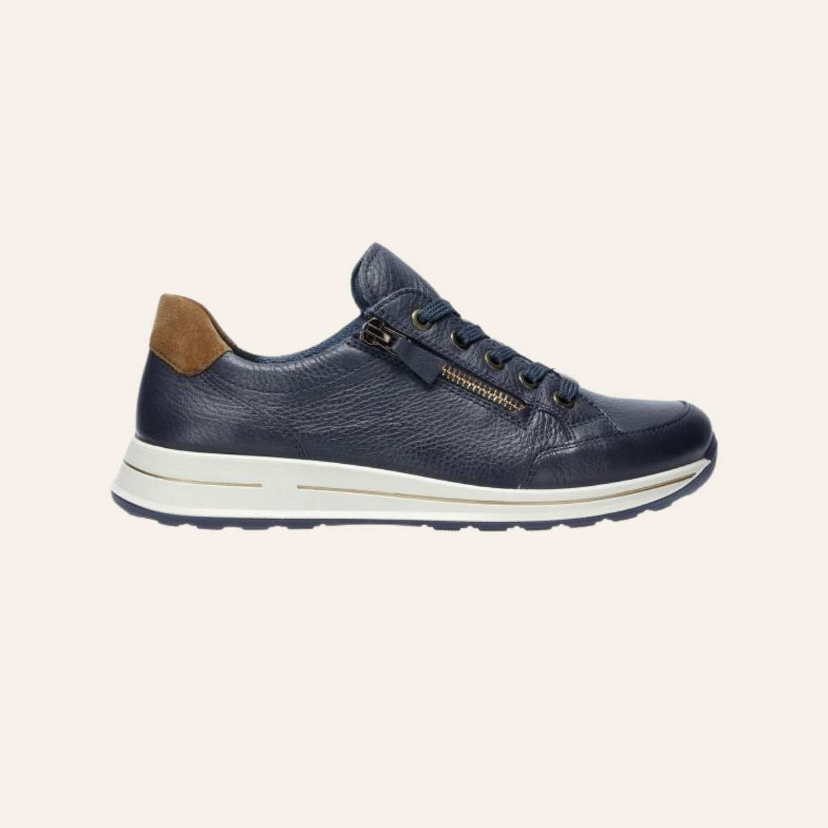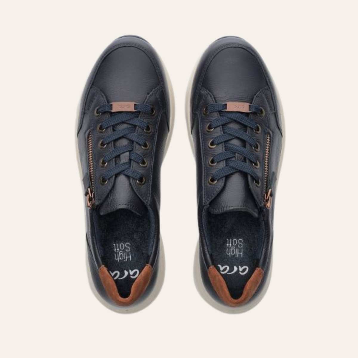 Osaka hverdagssko fra Ara. Mykt skinn til overmaterialet, men det bør også rettes spesiell oppmerksomhet mot interiøret: frotté basert på bambusfibre absorberer mye fuktighet, tørker raskt og er også så mykt at trykkpunkter forhindres. Takket være den komfortable Highsoft-funksjonen laget av mykt overmateriale og en såle med en spesiell skuminnsats i ballområdet, sikres en behagelig følelse av velvære ved hvert steg.
