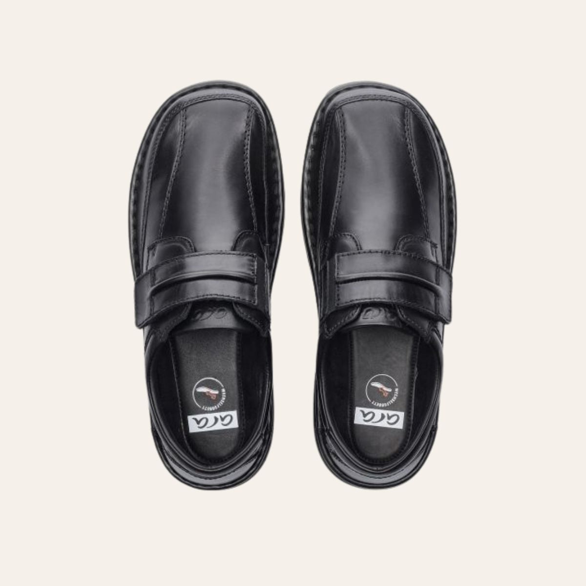 Den er fôret med mykt skinn for optimal komfort, og den ekstra brede K-lesten gir god plass og naturlig bevegelsesfrihet – ideell for deg med bredere føtter. For økt fleksibilitet har skoen avtakbar innersåle, som enkelt kan byttes ut med egne innleggssåler. Den praktiske borrelåslukkingen gjør skoen enkel å ta av og på, og gir samtidig godt feste og et gjennomført design.
