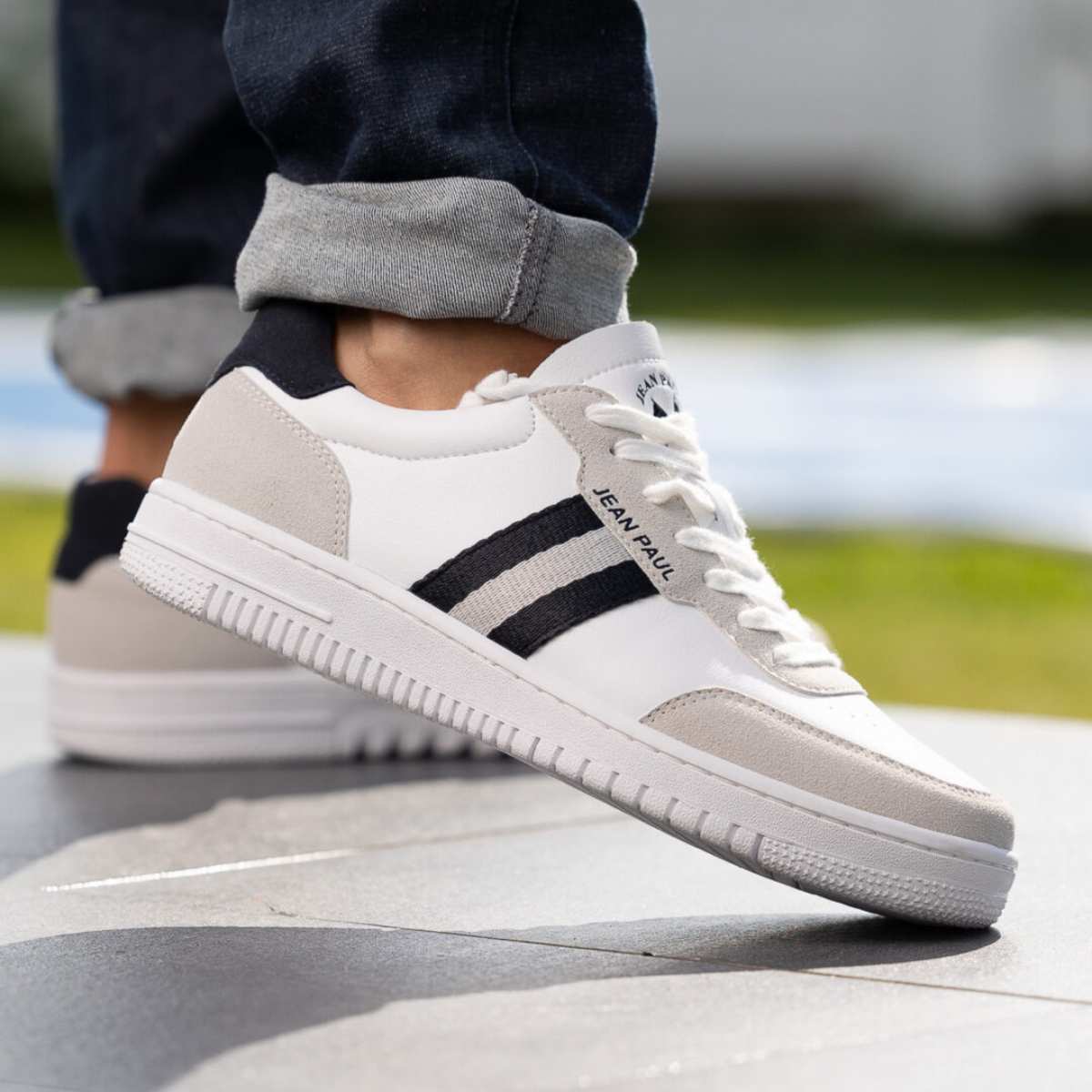 Klassisk og komfortabel tennisinspirert sneakers. Tå- og hælparti i semsket PU. Snørestykke med 7 lissehull. Dekorativt stripet bånd på siden. God dempet innersåle og hvit yttersåle i non-marking TPR. Logo på tunge og side.