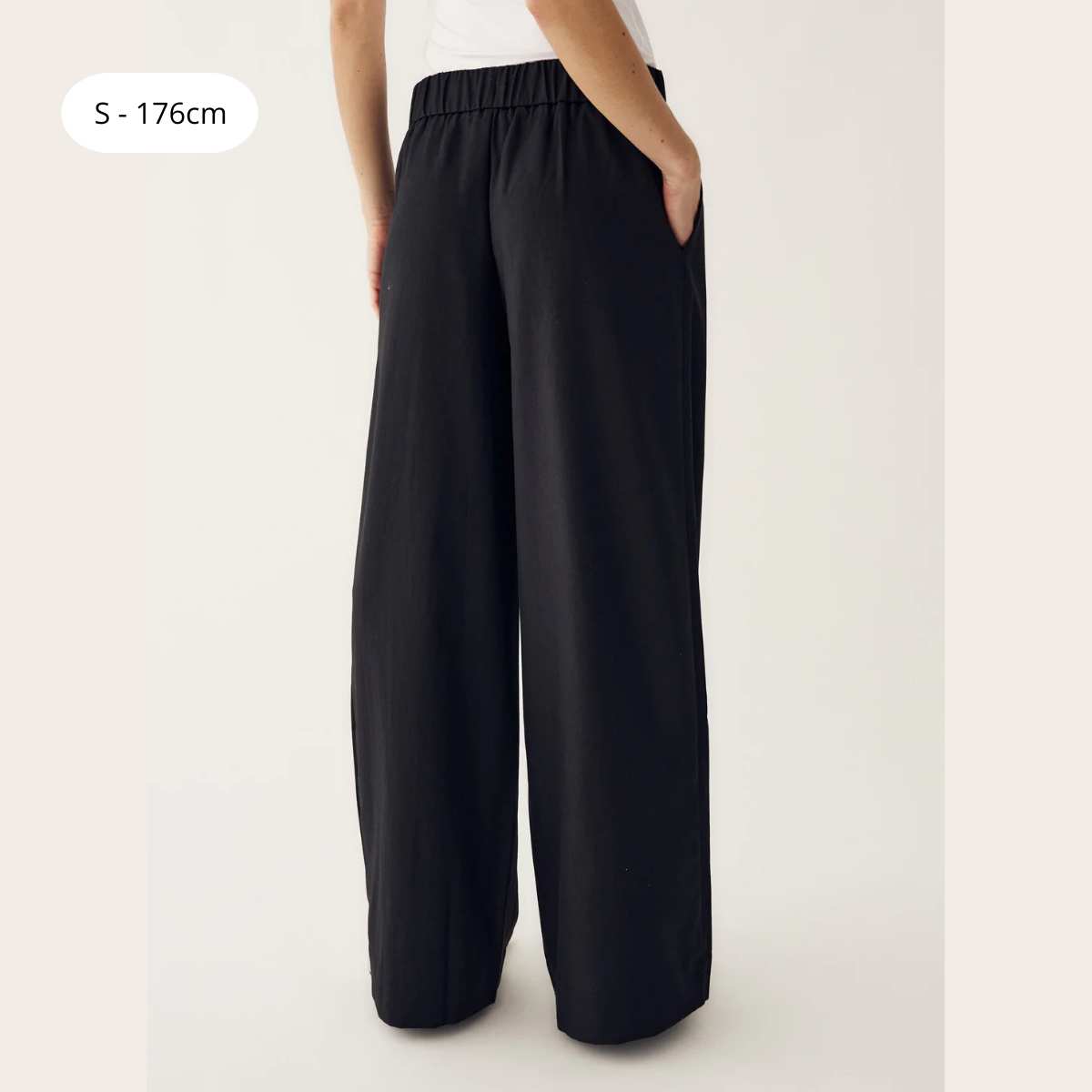Kameron Pants er lange bukser med elastikk i midjen, vide ben og løs passform. Buksen har et komfortabelt design med et enkelt og avslappet uttrykk. Style dem som en del av hverdagsantrekk eller bruk dem som finere bukser for et mer sofistikert look.