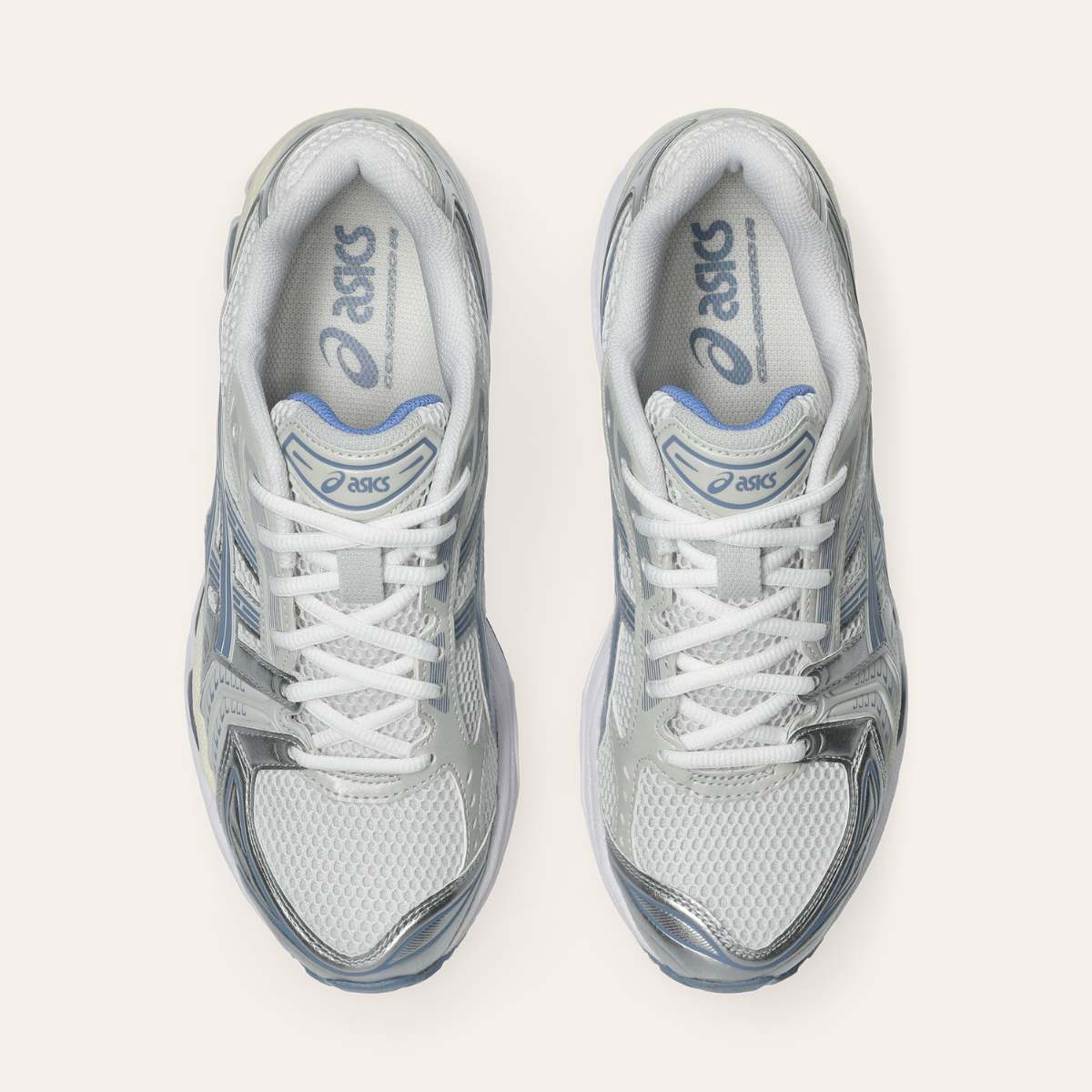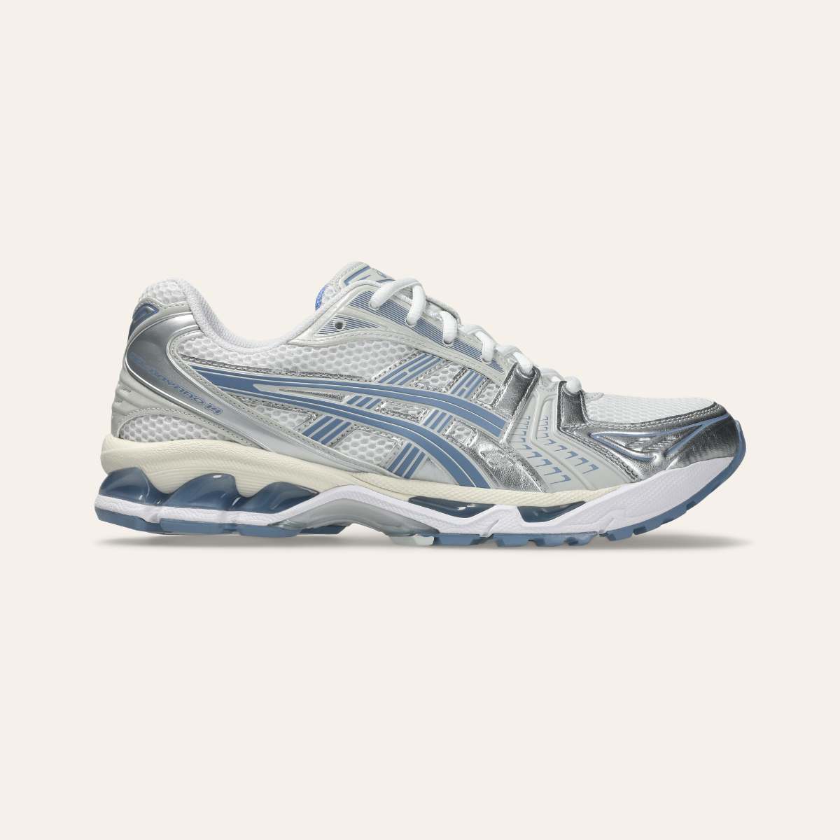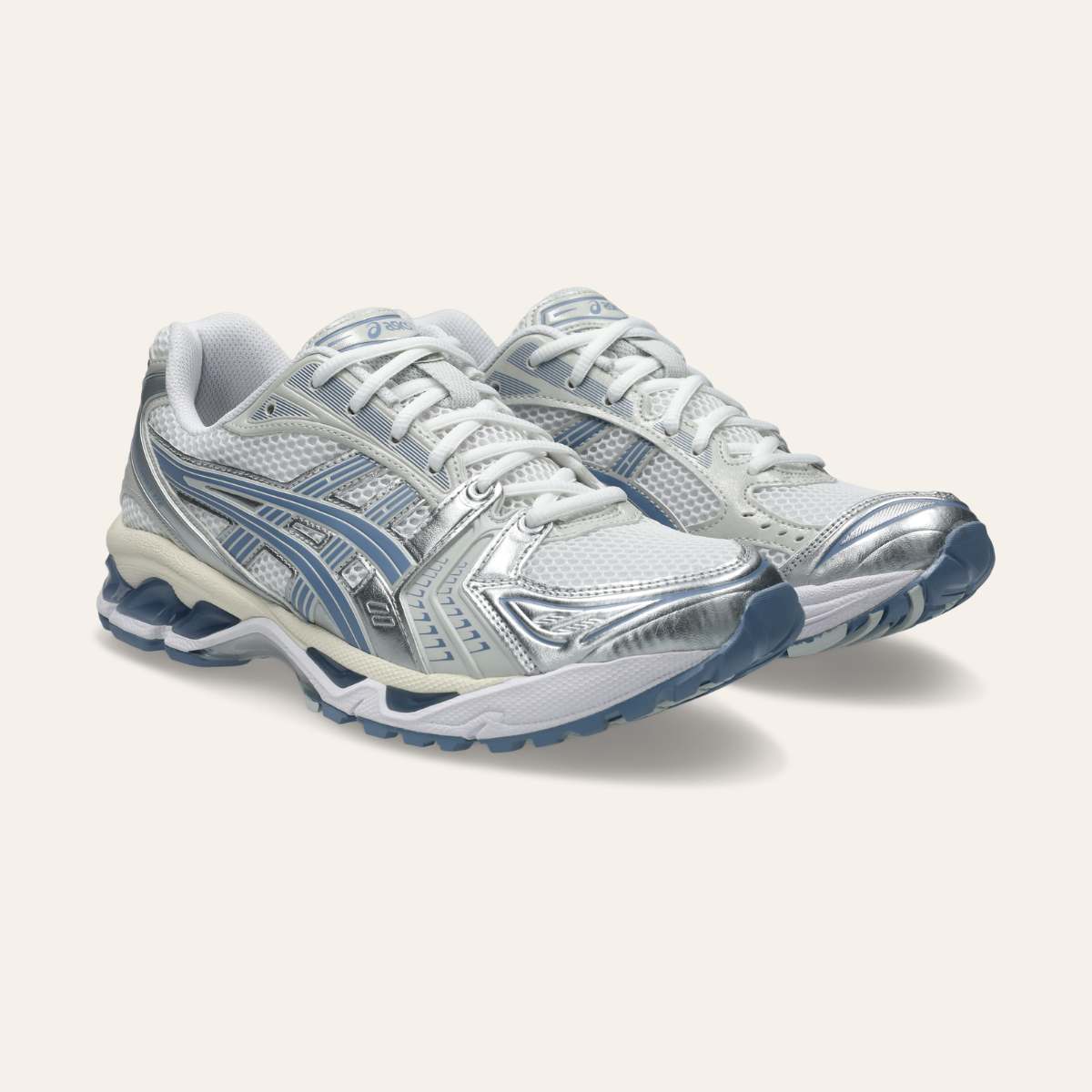 GEL-KAYANO 14 er en nytolkning av en retro løpesko med 2000-talls estetikk, inspirert av tidligere GEL-KAYANO-modeller fra Asics. Den oppdaterer ytelsen med nye materialer, samtidig som den beholder den originale mellomsålen med GEL-demping og forbedret passform. Overdelen har lagdelt skinn- og meshkonstruksjon fra 2008.