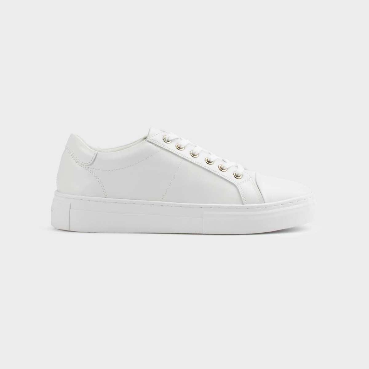 Zoe Platform sneakers fra Vagabond har et rent design med sofistikerte detaljer. Modellen er laget av hvitt skinn med avrundede tupper, snørelukking og polstrede krager. De forhøyede sålene måler 40 mm. Detaljer inkluderer gullfargede maljer.