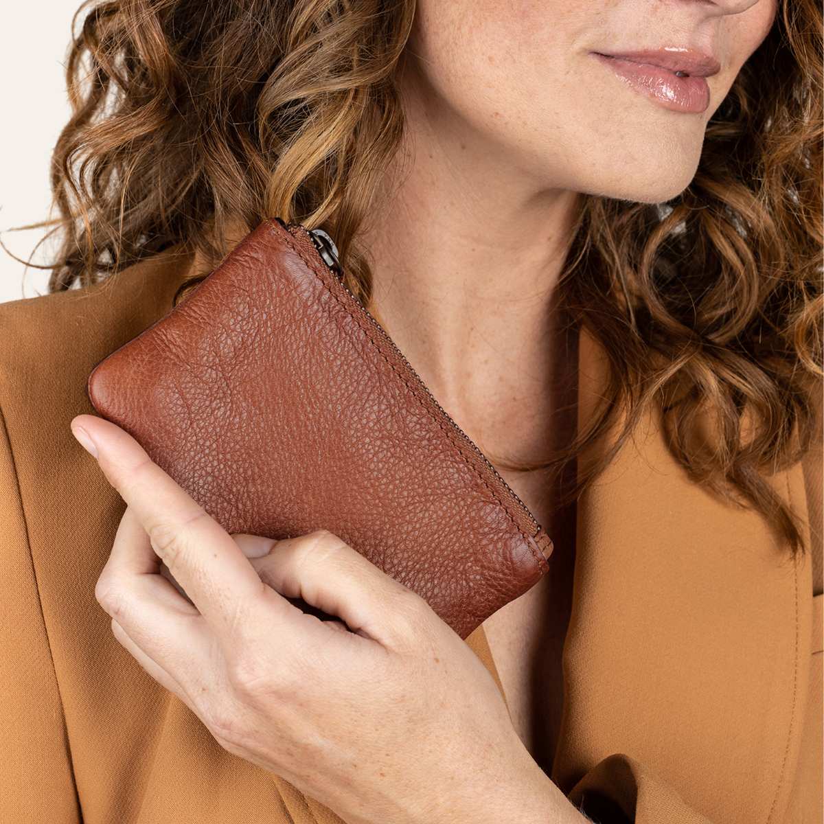 Liten og fin lommebok fra Dixie. Skinnlommebok med nøkkelring. Lukkes med glidelås øverst.